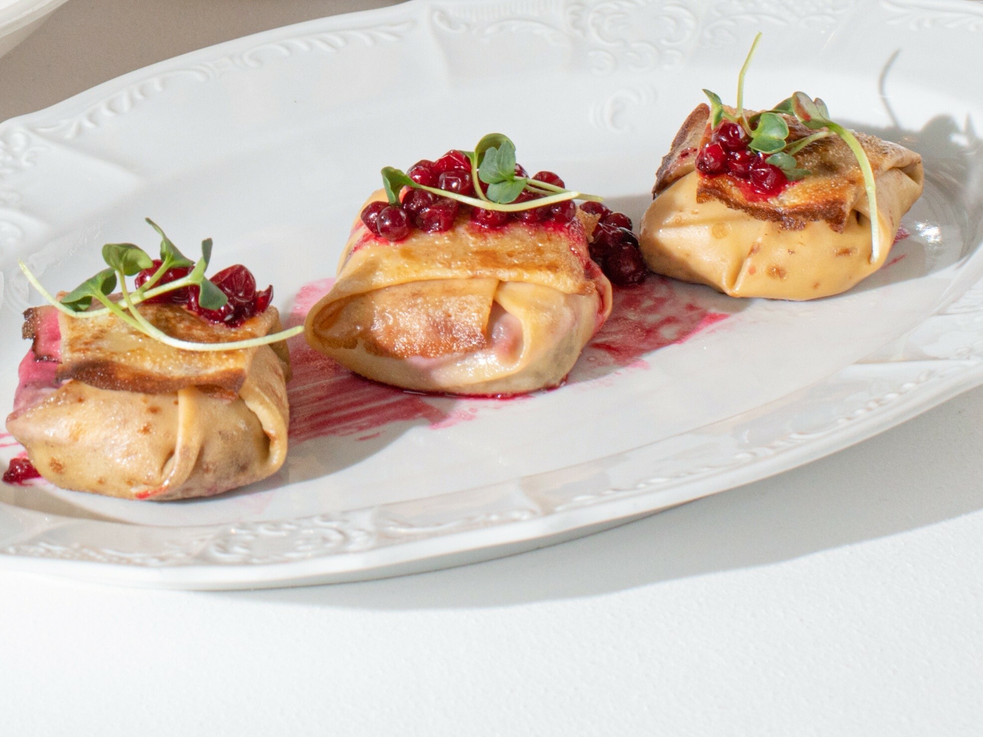 - Блинчики с дичью и брусникой -Crepes with game and cowberries